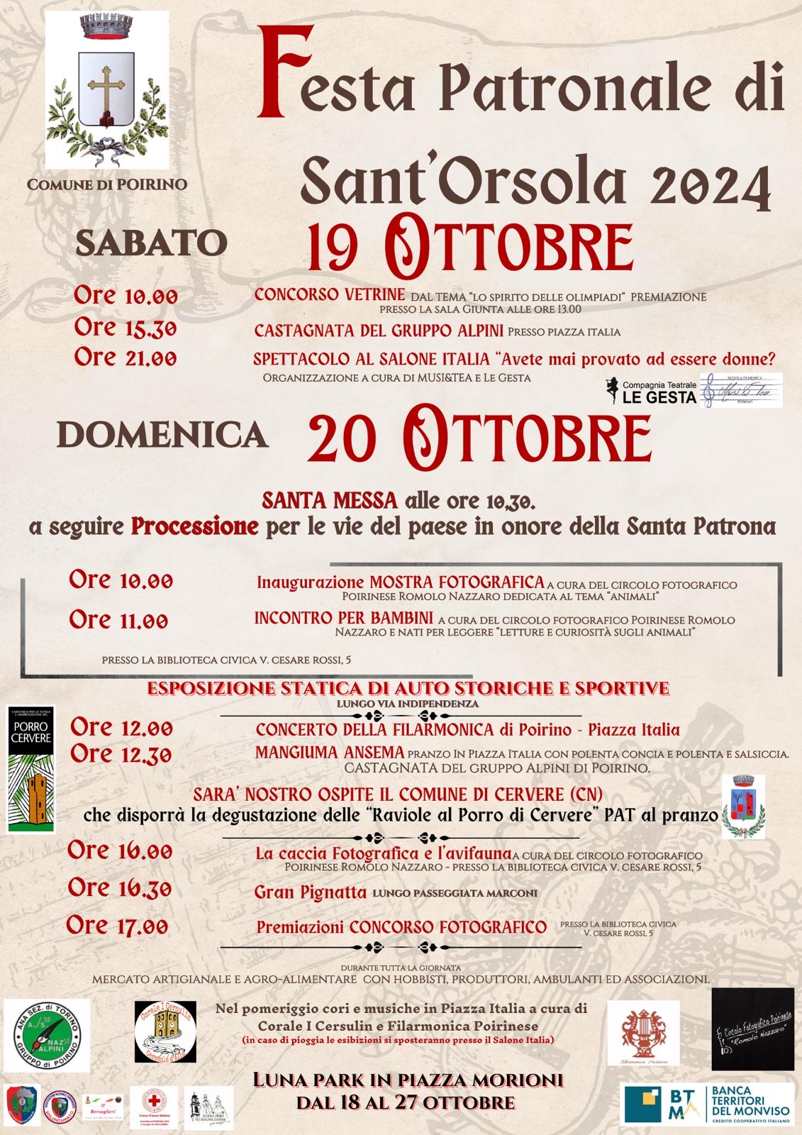 Domenica 20 ottobre 2024 la corale de "I Cersulin" sarà ospite a Poirino in occasione della Festa patronale di Sant'Orsola, durante la quale allieterà il pomeriggio in Piazza Italia con cori e musiche.