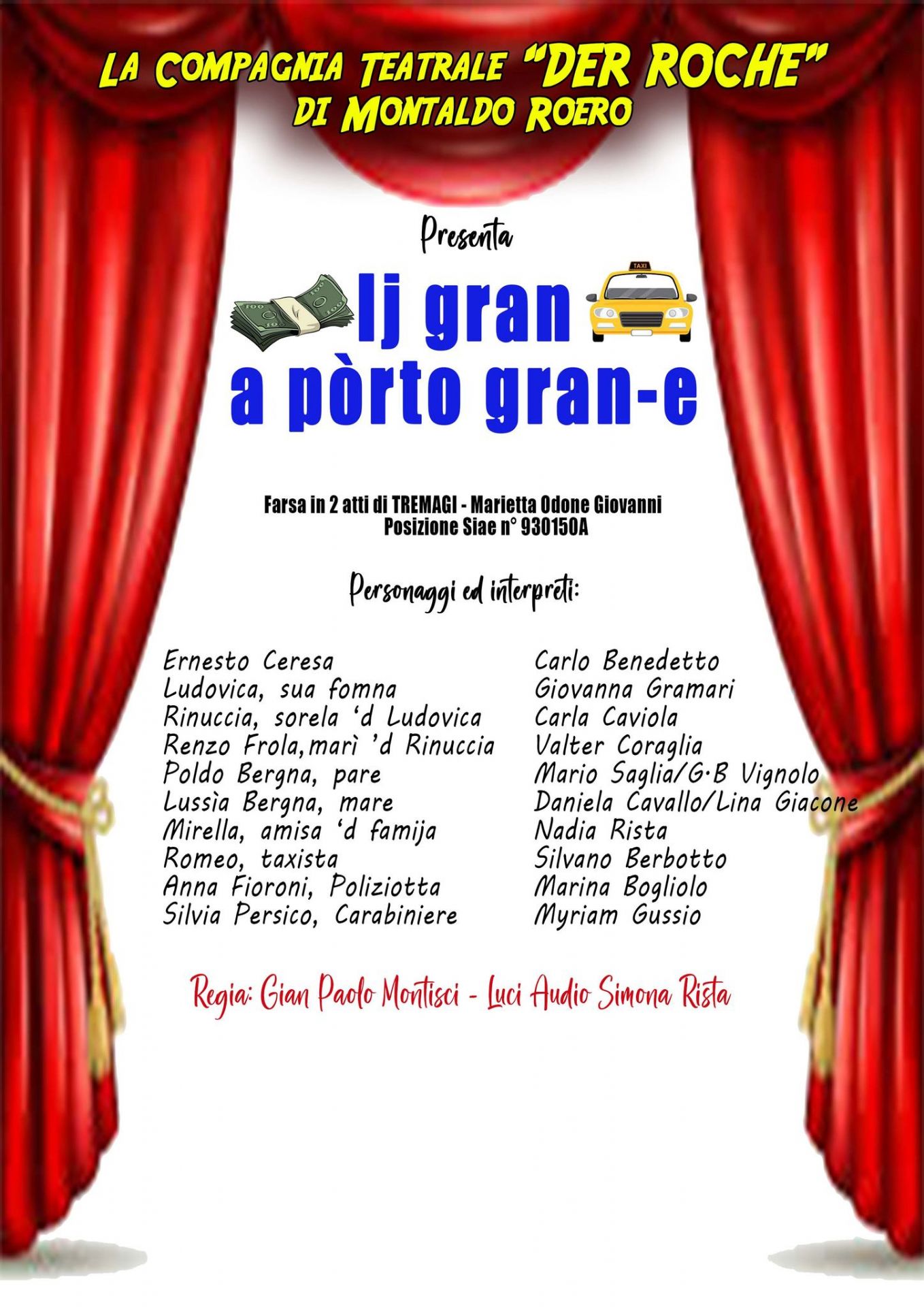 Il secondo appuntamento della rassegna “Teatro del territorio” vede salire sul palcoscenico del Teatro sociale “G. Busca”, domenica 25 febbraio 2024, alle ore 17:00, la Compagnia Der Roche con lo spettacolo “ij gran a porto gran…e”.