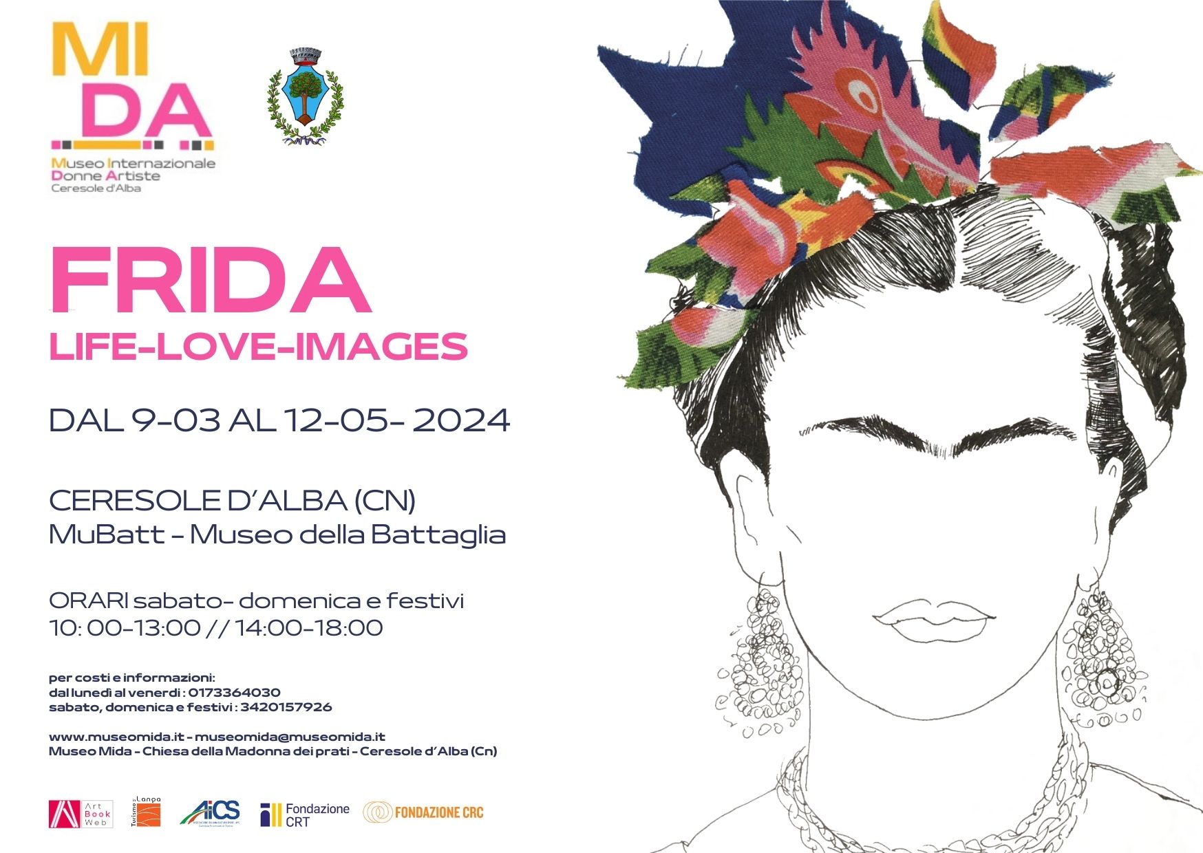 Ultimo weekend per visitare la Mostra temporanea FRIDA KAHLO. LIFE LOVE IMAGES nel salone del muBATT di Ceresole d'Alba