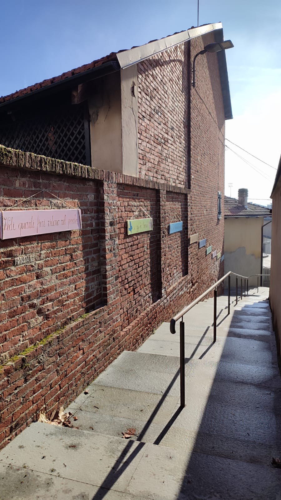 Grazie ai volontari della Biblioteca Civica di Ceresole d’Alba che hanno risistemato nel vicolo delle farfalle i pannelli esposti durante la festa patronale dello scorso mese di settembre. Si tratta di una poesia di Lino Perlo, Ceresolese mancato da qualche anno. In biblioteca è custodito il libro che raccoglie le sue poesie - insieme a quelle della sorella - una delle quali ha un riferimento alle farfalle: da ciò è nata l’idea di abbellire il vicolo con dei pannelli colorati, riportanti i versi della poesia.
