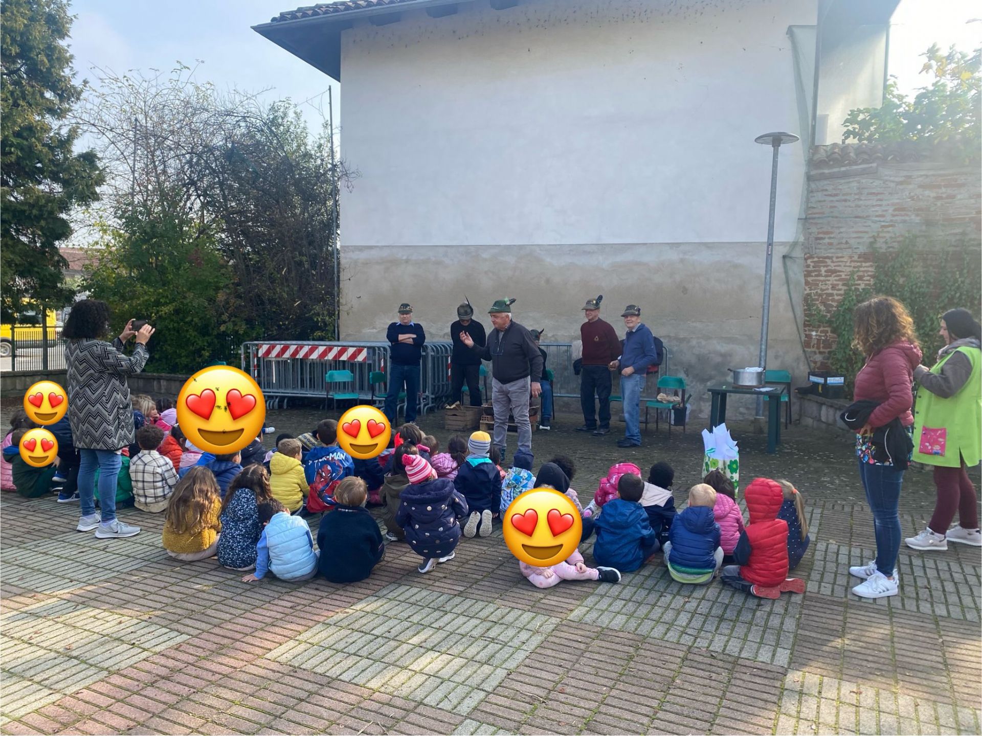Oggi, lunedì 4 novembre, i bambini dell'Asilo Artuffi dell'infanzia e della prima elementare sono stati protagonisti della castagnata preparata dal gruppo Alpini.
