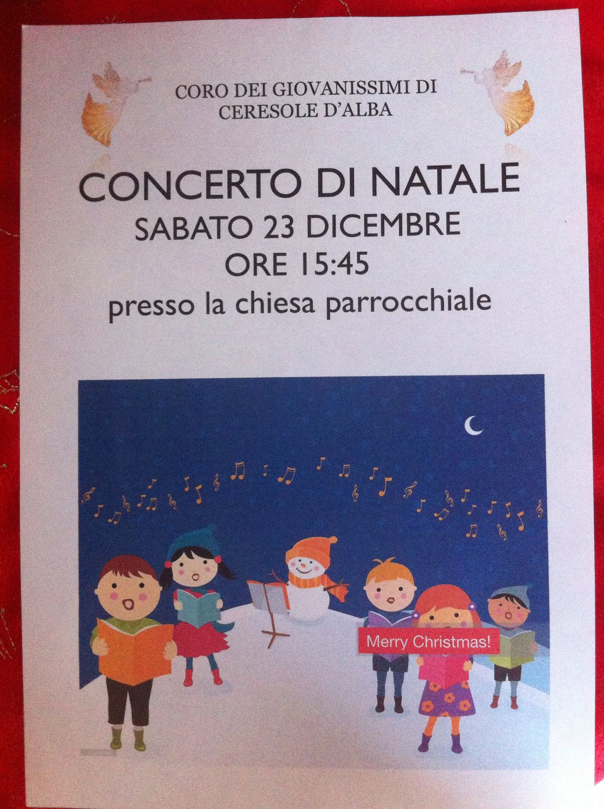 Il Coro dei Giovanissimi di Ceresole d'Alba vi invita al Concerto di Natale che si terrà SABATO 23 dicembre prossimo alle 15.45 presso la chiesa parrocchiale di San Giovanni di Ceresole d'Alba.