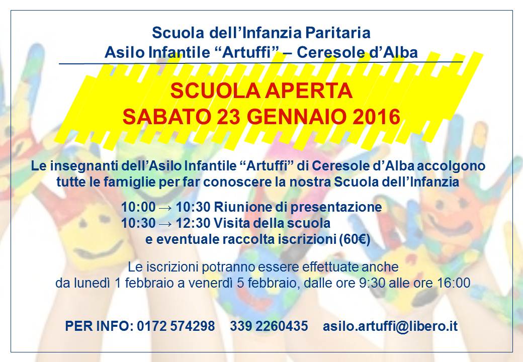 Informazioni: 0172/574298 oppure 339 2260435 asilo.artuffi@libero.it