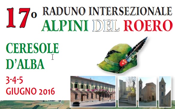 Si è svolto nei giorni di venerdì 3 giugno, sabato 4 e domenica 5 a Ceresole d'Alba il 17° RADUNO INTERSEZIONALE ALPINI DEL ROERO.