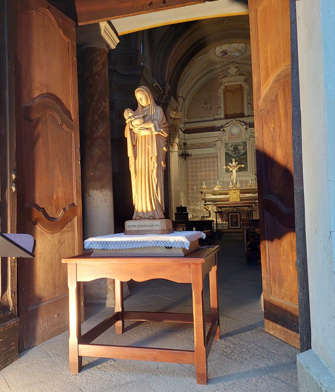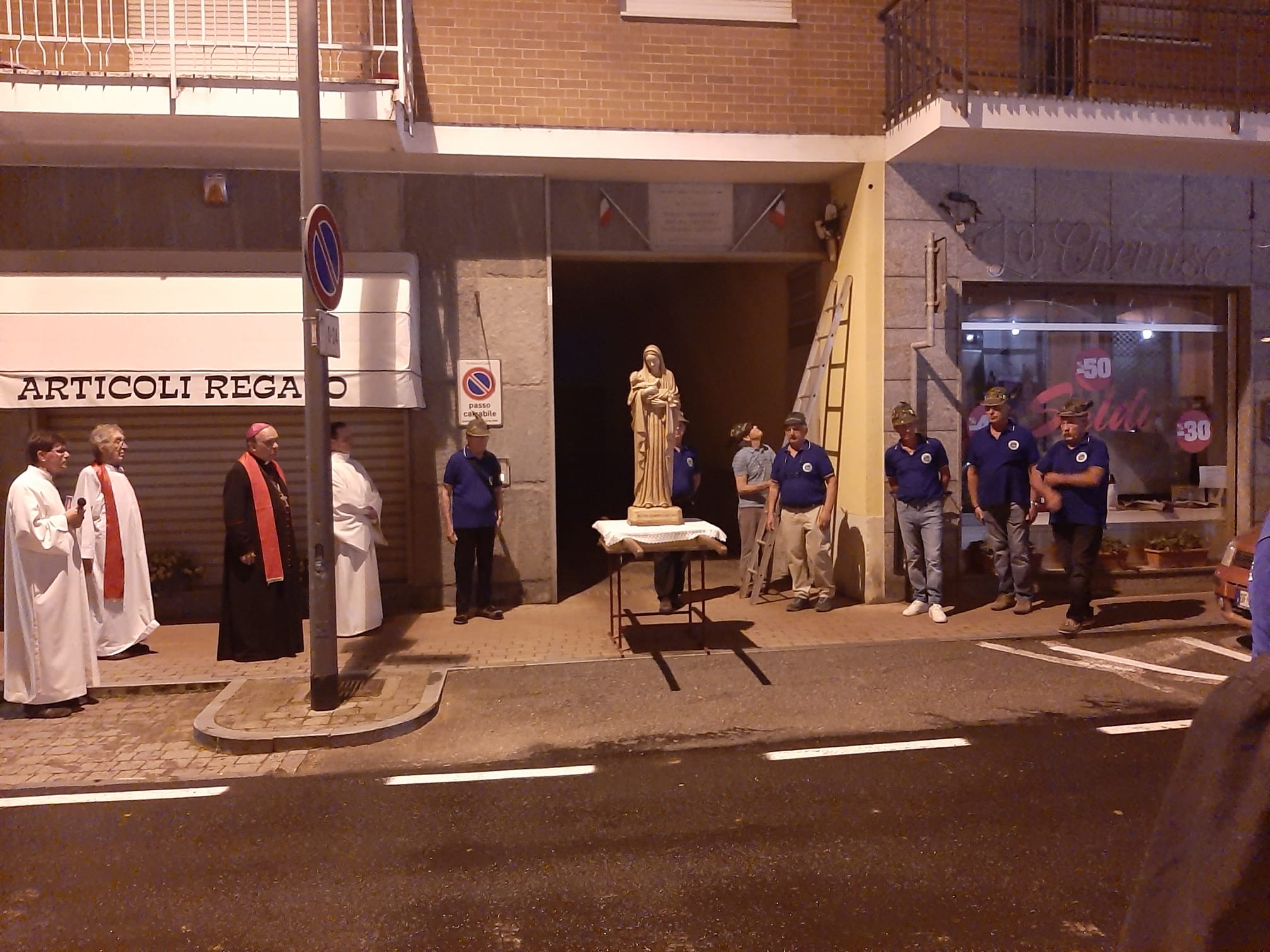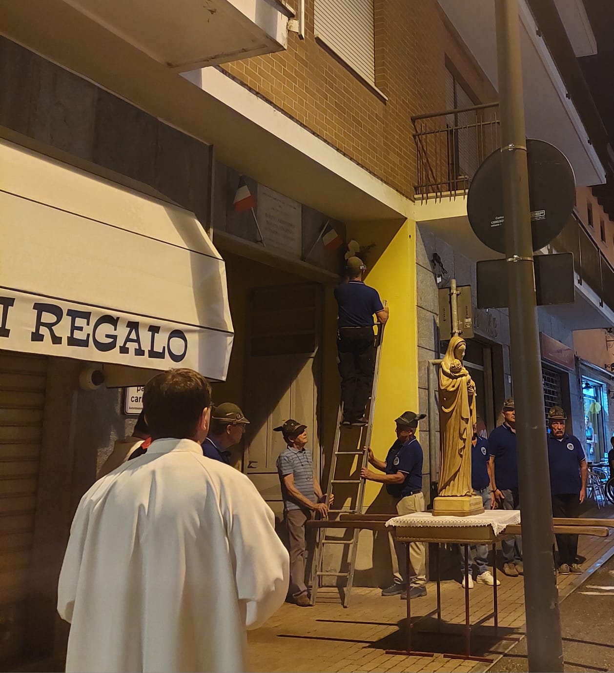 A seguire la statua della Madonna di Dachau, ospite in queste settimane a Ceresole, è stata portata dagli Alpini in processione sotto i balconi dove si è svolto l’eccidio e l’Alpino Silvano Ceratto ha recitato la preghiera della Madona dij Suldà di Nino Costa.
