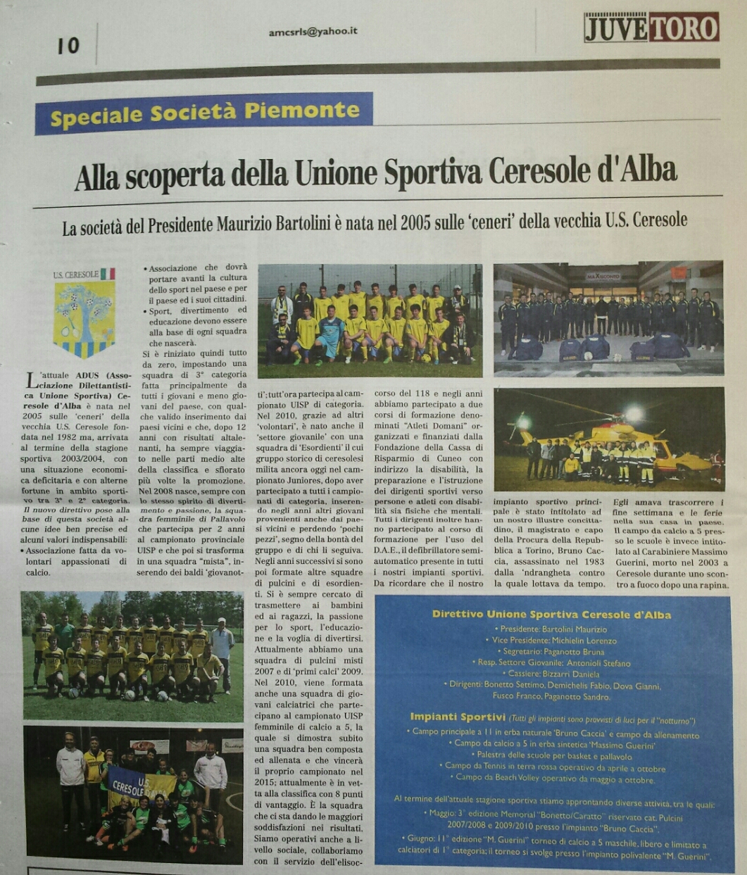 Portiamo a conoscenza di 2 iniziative dell’Unione Sportiva di Ceresole d’Alba: la presenza di una pagina dedicata sul giornale “JuveToro” e la “Lotteria dello Sport” per finanziare le iniziative dell’associazione.