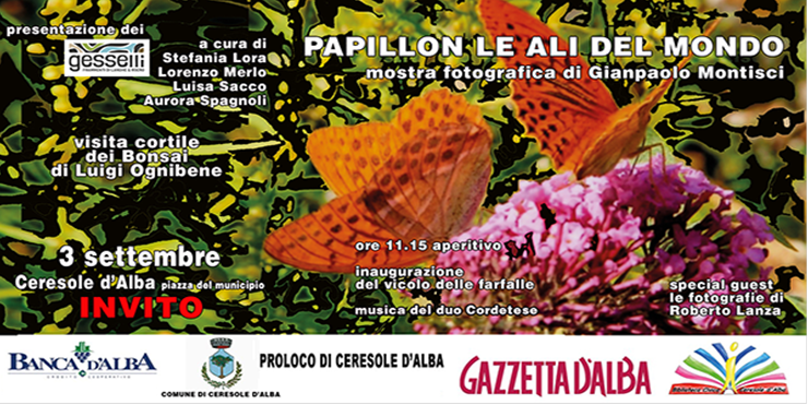 Presso la nuova piazzetta del municipio, la biblioteca organizza l’inaugurazione del VICOLO DELLE FARFALLE: mostra fotografica a cura di Paolo Montisci, con una animazione musicale a cura del Duo Cordetese