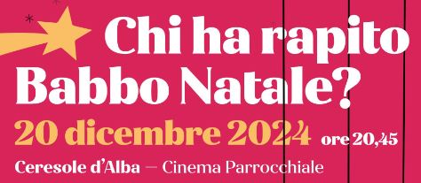 Venerdì 20 dicembre 2024 alle ore 20:45 si svolgerà lo spettacolo di burattini "Chi ha rapito Babbo Natale?" presso il Cinema Parrocchiale di Ceresole d'Alba; i bambini dell'Infanzia apriranno la serata con gli auguri di Natale attraverso canzoncine e poesia.