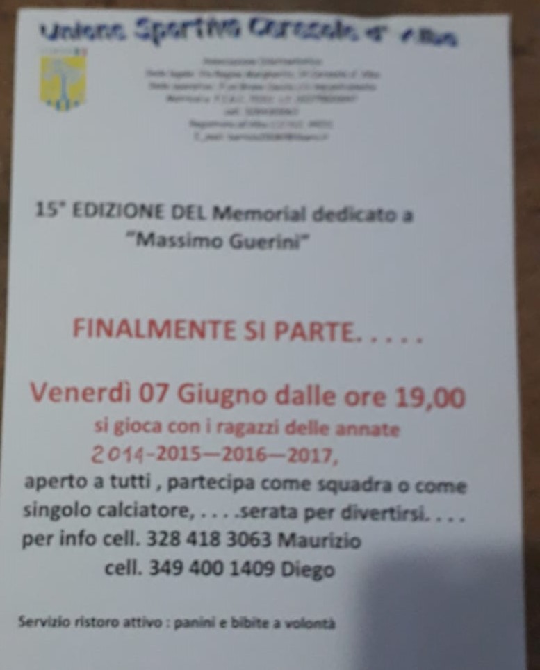 Anche quest'anno si terrà il torneo di calcetto "Massimo Guerini", in ricordo del carabiniere ucciso durante una rapina a Ceresole, organizzato dall'Unione Sportiva.