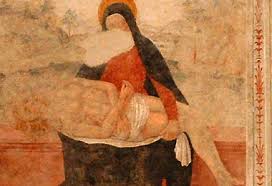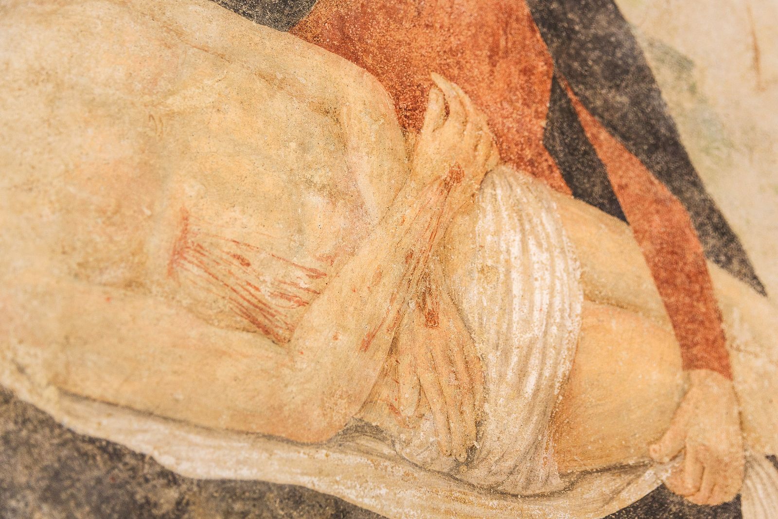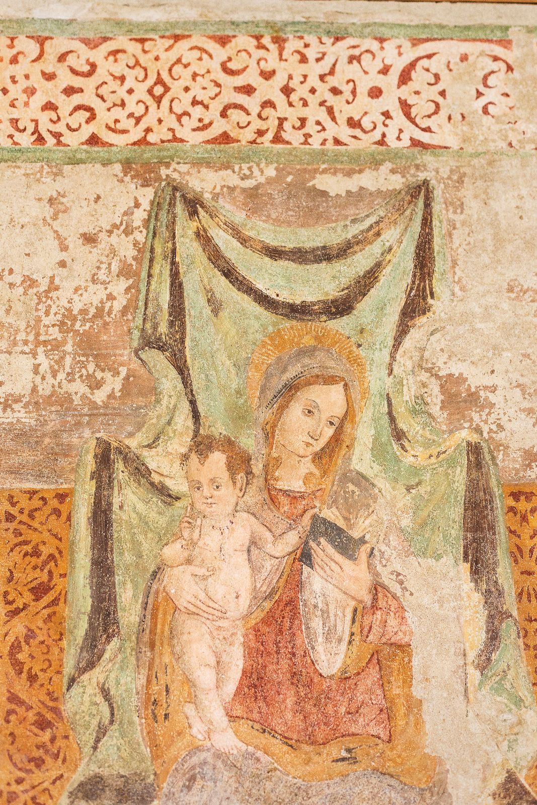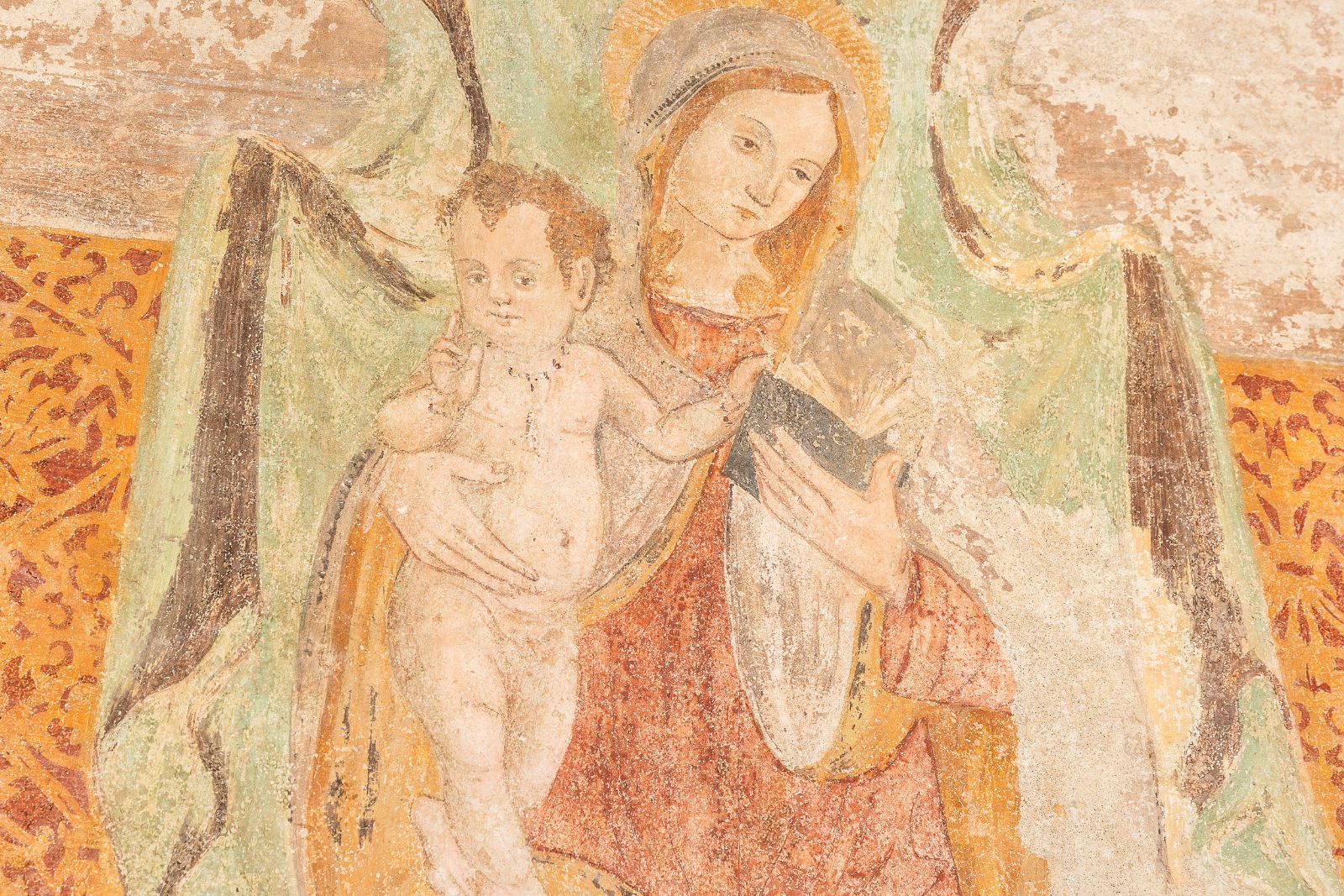-Affresco (sec. XV) nel santuario campestre della Madonna dei Boschi a Vezza;