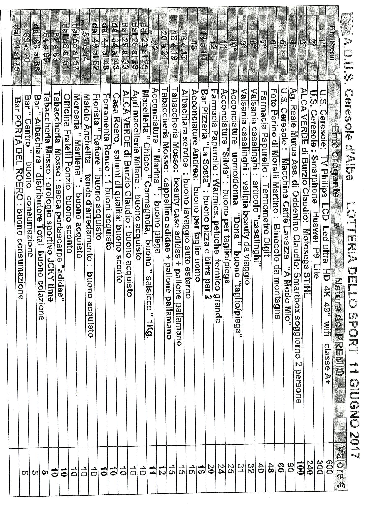 ASSOCIAZIONE SPORTIVA CERESOLE D'ALBA: elenco premi lotteria e pagina sul giornale