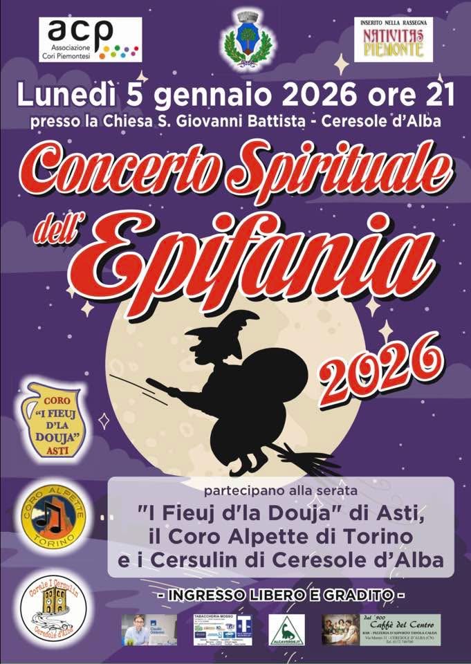 Lunedì 5 gennaio 2025 la corale de "I Cersulin" organizza il concerto dell'Epifania alle ore 21:00 presso la Chiesa S. Giovanni Battista di Ceresole d'Alba.