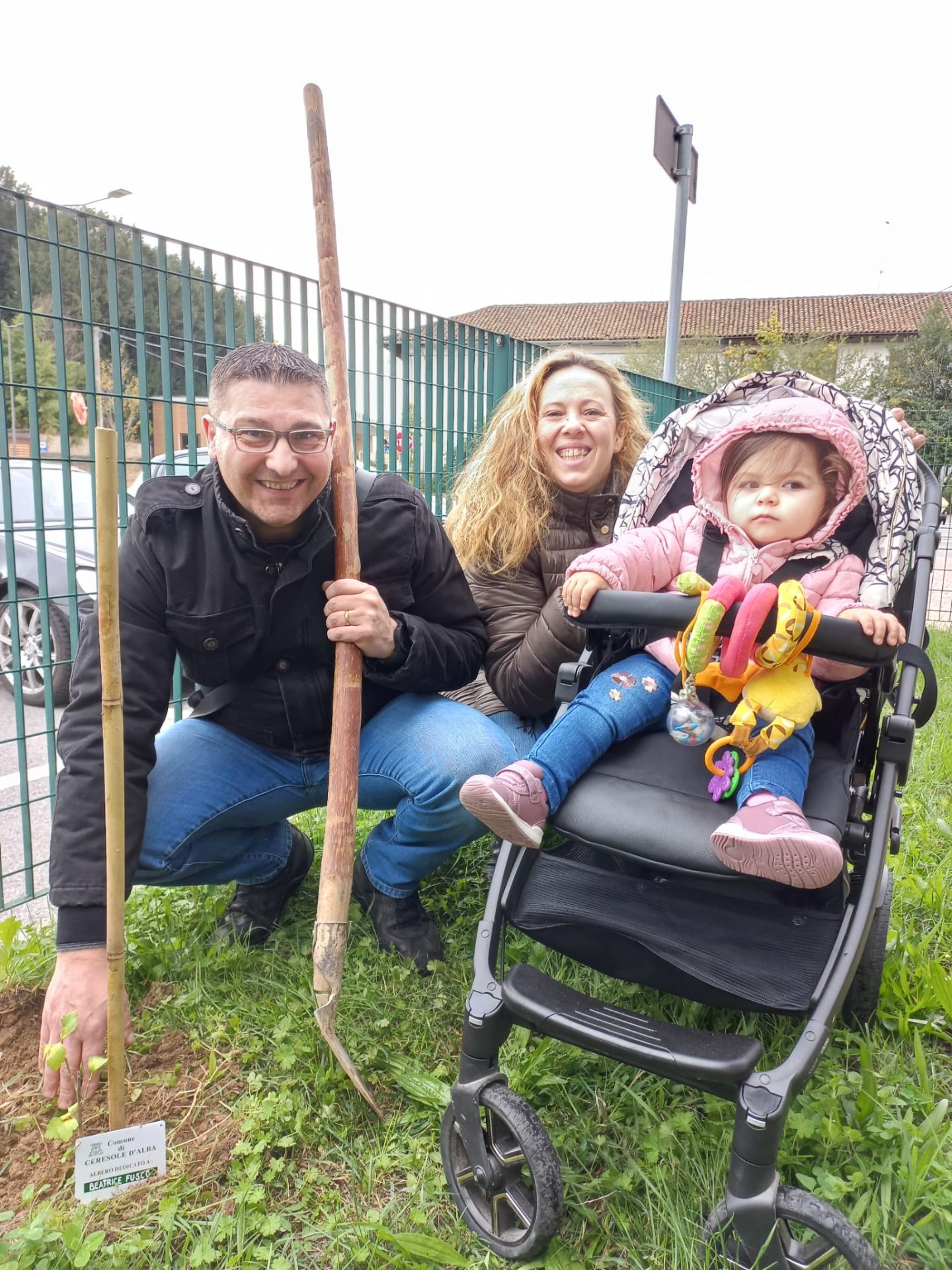 La giornata è iniziata alle ore 9.30 con il ritrovo in municipio dove le famiglie dei piccoli nati nel 2022 alla piantumazione di un alberello per ogni nuovo nato a Ceresole lo scorso anno. Gli 11 piccoli, accompagnati dai genitori, hanno partecipaato alla posa delle piantine e in futuro potranno prendersene cura e osservarne la crescita. La piantumazione di piccole piantine di Ibisco è avvenuta nel prato delle scuole Ceresolesi verso la centrale piazza Caccia.