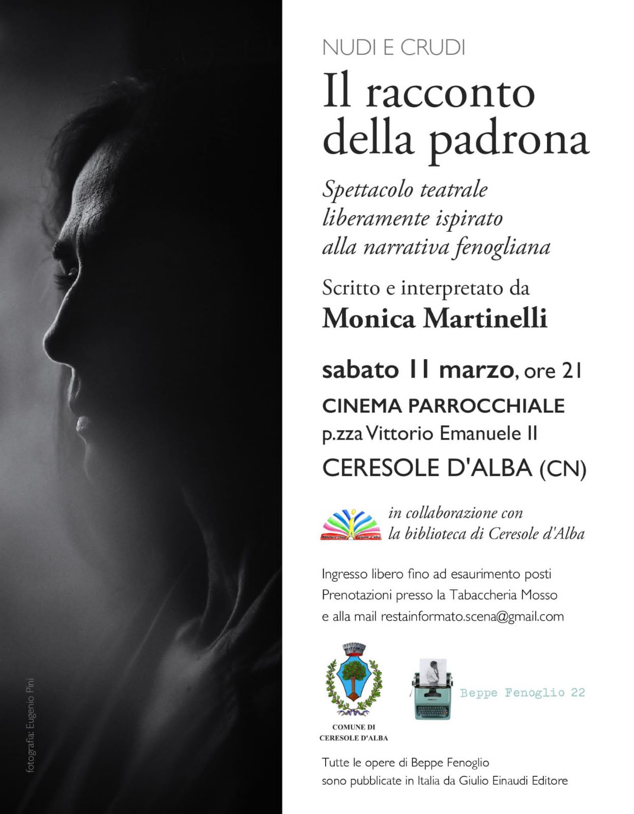 Sabato 11 marzo ore 21 presso il teatro parrocchiale di Ceresole d'Alba verrà rappresentato lo spettacolo teatrale "Il racconto della padrona", liberamente ispirato alla narrativa fenogliana.