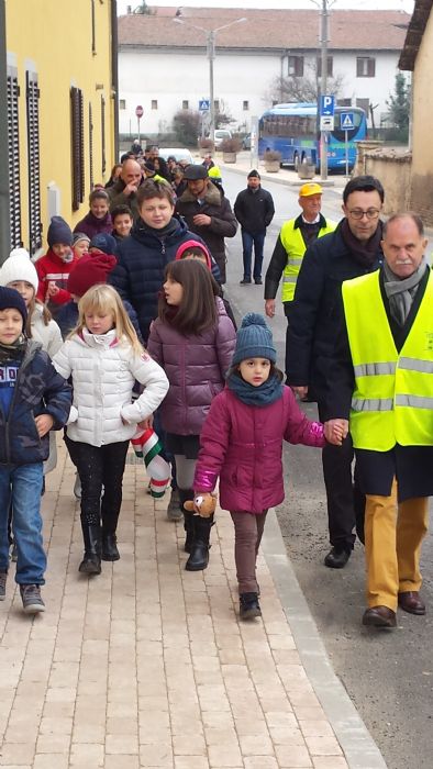 La breve festa ha previsto una simpatica passeggiata a cui hanno partecipato i bambini del PEDIBUS, i Nonni Civici, la Protezione Civile e i Ceresolesi.