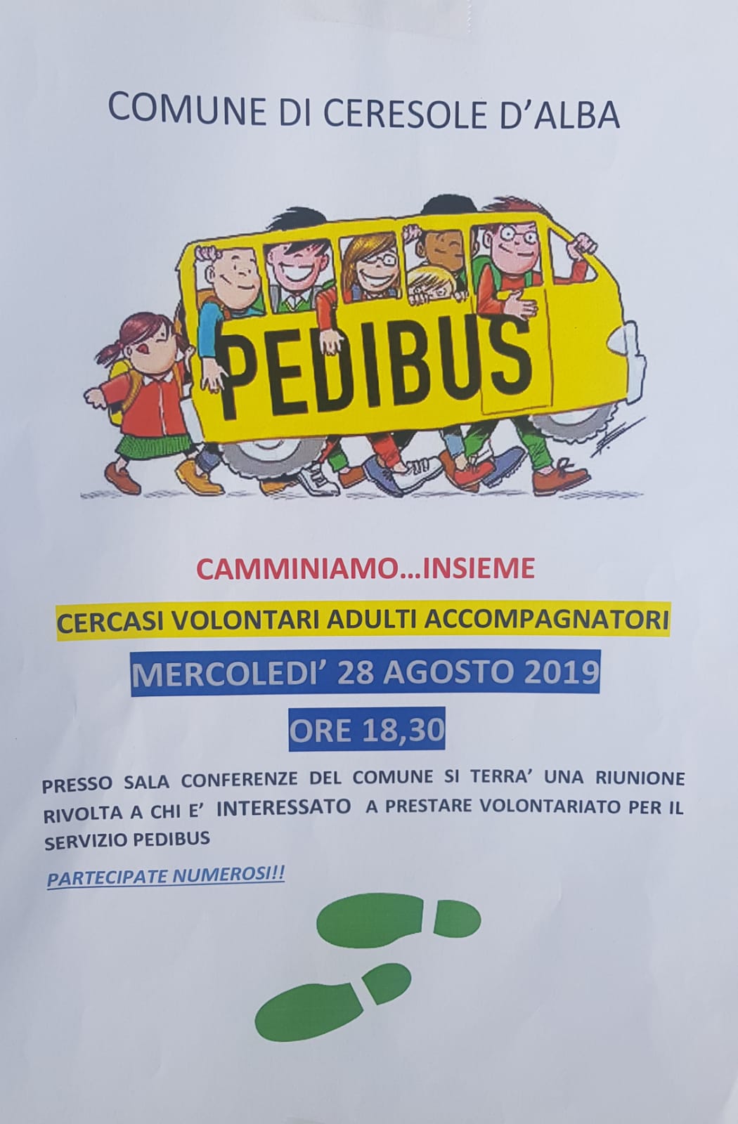 Mercoledì 28 agosto ore 18.30 si terrà una riunione organizzativa presso il Municipio con tutti i Volontari che hanno voglia di impegnarsi per il servizio Pedibus per le scuole di Ceresole d'Alba. Sono invitati tutti coloro che hanno del tempo da dedicare ai nostri ragazzi. Venite anche solo per sentire e spargete la voce!